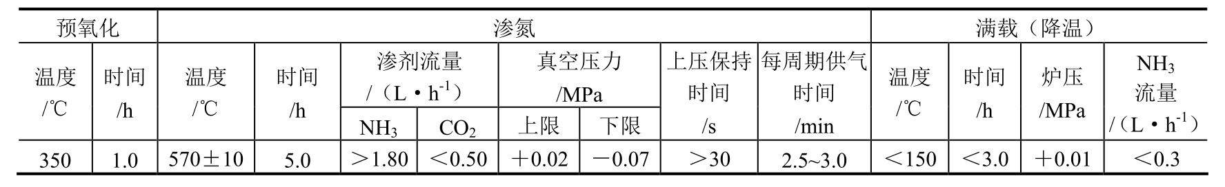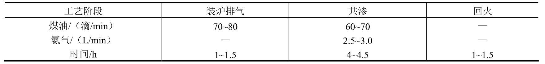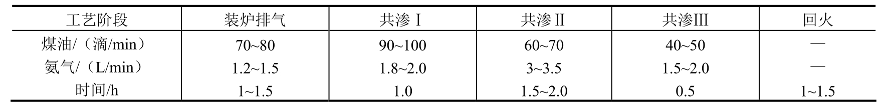表1-71 原碳氮共渗工艺参数