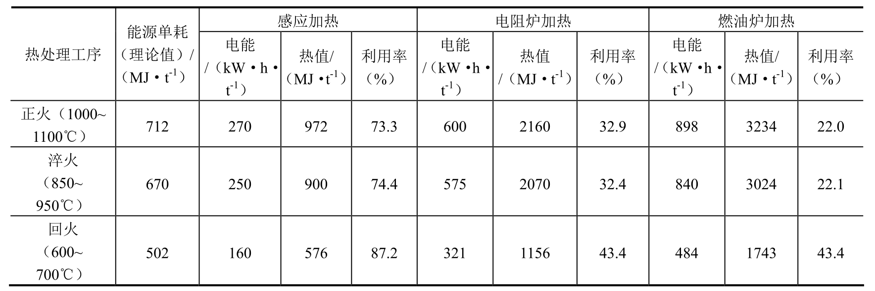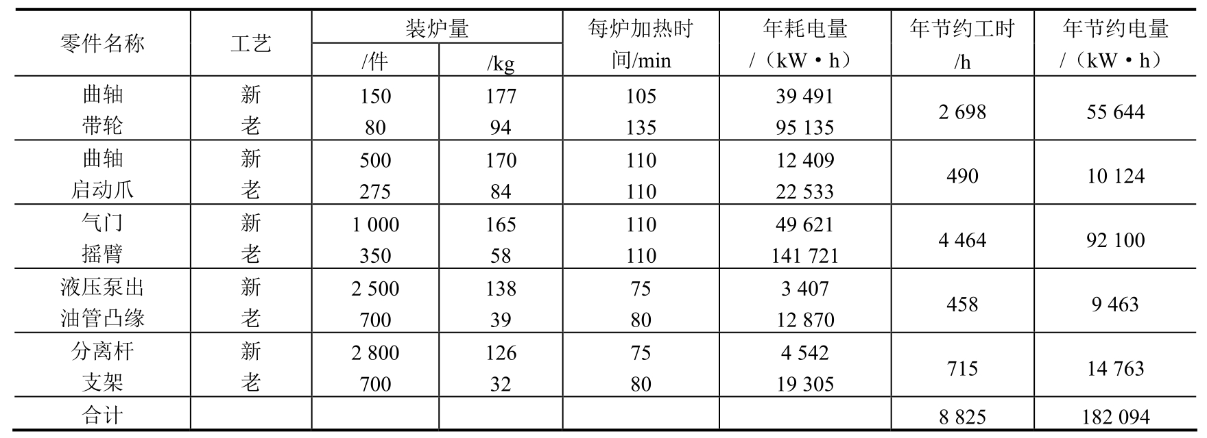 原工艺总用电量为热矫直300kW·h+淬火加热330kW·h+回火加热225kW·h=855kW·h。