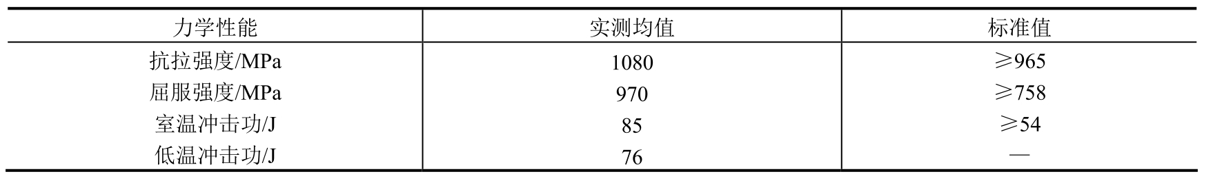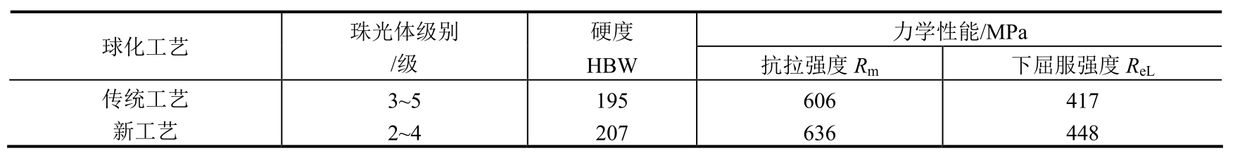 (3)检验结果。试样力学性能检验数据如下:抗拉强度700MPa,屈服强度445MPa,伸长率19.2%,收缩率50%,冲击韧度60J/cm 2 ,硬度210~225HBW。其性能均达到图样技术要求。