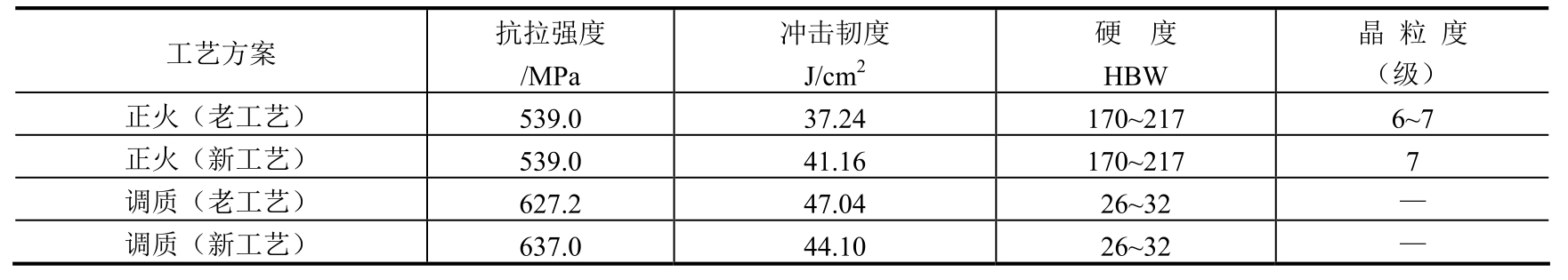 (1)原工艺及存在问题。原曲轴热处理采用正火+高温回火。为保证曲轴综合力学性能,正火冷却采用喷雾冷却;高温回火是为了降低硬度和消除喷雾冷却造成的应力。因此,原工艺周期长,能耗高,生产效率低,成本高。