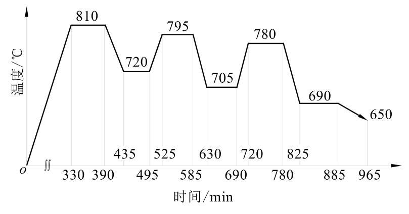 (3)密封箱式多用炉的“369”节能法则。工件在密封箱式炉中加热的热效率比真空炉高,故其369法则的参数可以按真空炉“369”节能法则中的下限选取,即当G=301~600kg时,T 真1 =T 真2 =T 真3 =30+D;当G=601~900kg时,T 真1 =T 真2 =T 真3 =60+D;当G≥901kg时,T 真1 =T 真2 =T 真3 =90+D。