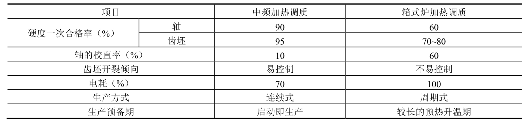 (4)节能效果。由于取消了正火和调质工序,以及感应加热淬火工序,采取零保温淬火和中温回火,与原工艺相比,不仅节能30%以上,成本降低近30%,而且避免了齿轮产生淬火裂纹,降低了废品率。