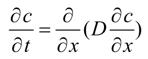 式中,c为浓度,t为时间,x为扩散距离,D为扩散系数。