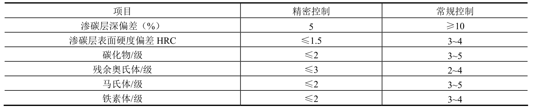 表1-75 不同控制系统渗碳工件质量对比