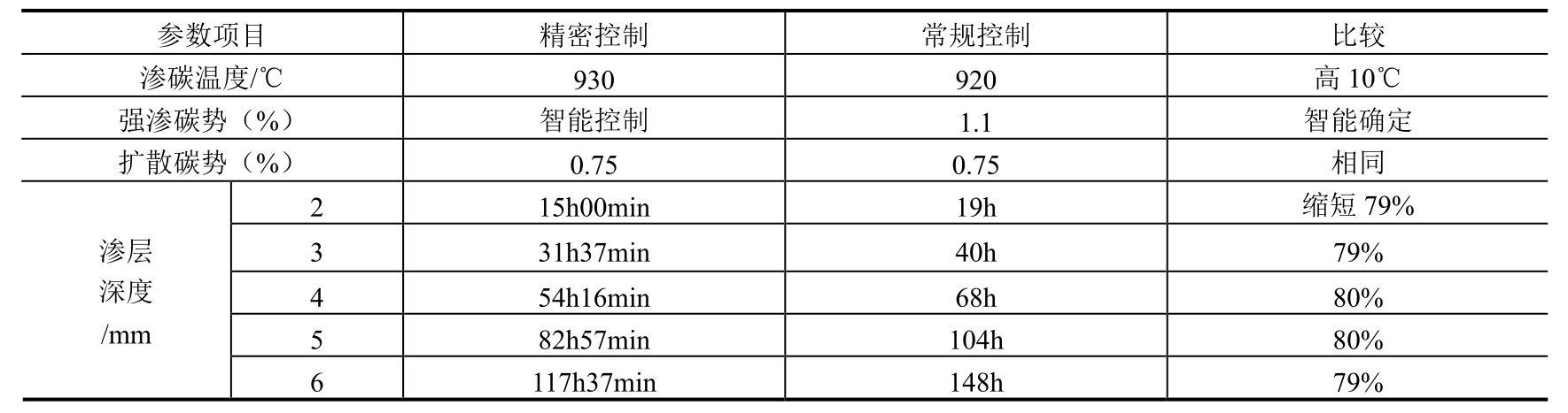 精密控制渗碳技术由于其控制的精度提高,故可以以更高的温度和气氛碳势进行渗碳,比常规控制渗碳工艺周期平均缩短了20%,能耗降低12%以上。