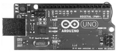 AVR单片机的串行通信口(RXD和TXD)除了接在USB到串行数据的转换芯片上之外,还作为Arduino的0号和1号引脚,在板上有明确的标识,如图1-55所示。