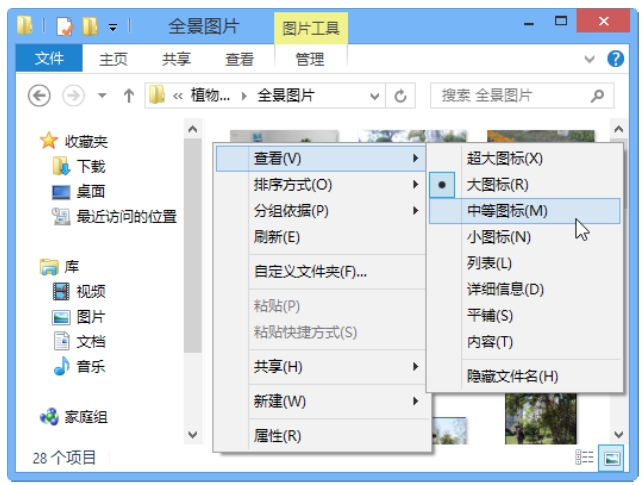 小图标、中等图标、大图标、超大图标:以不同的大小显示文件和文件夹图标,对于图像文件,当图标大小设置为“中等图标”或更大时,文件将以缩略图形式显示。