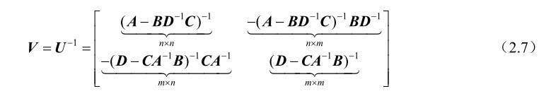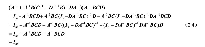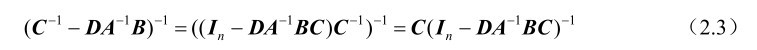 命题2.1: 设矩阵A∈R m×m ,B∈R m×n ,C∈R n×n 和D∈R n×m ,并且矩阵A、C和C -1 -DA -1 B均可逆,则下面的矩阵恒等式成立: