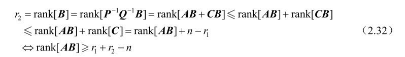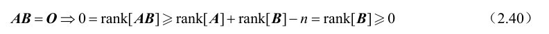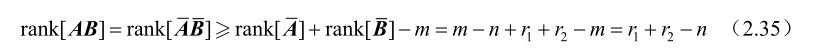 是一系列初等变换矩阵的乘积,因此用它右乘AB不会改变秩,于是根据式(2.20)可得