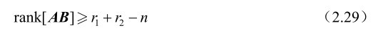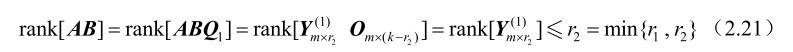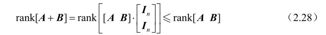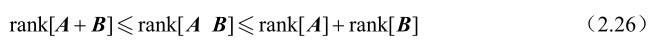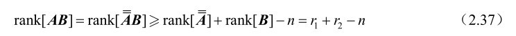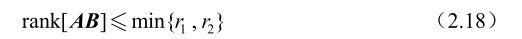 命题2.5: 设矩阵A∈R m×n 和B∈R n×k ,并将它们的秩分别记为r 1 =rank[A]和r 2 =rank[B],则矩阵AB的秩满足