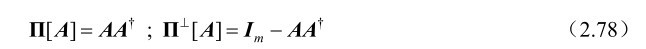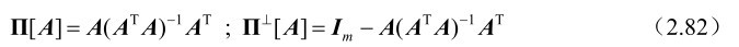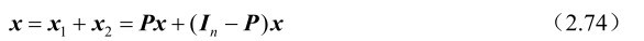 式中,x 1 =Px∈S和x 2 =(I n -P)x∈S ⊥ ,则称P是线性子空间S上的正交投影矩阵,I n -P是S正交补空间S ⊥ 上的正交投影矩阵。若S表示矩阵A的列空间,则本书将矩阵P 记为Π[A],而将矩阵I n -P记为Π ⊥ [A]。