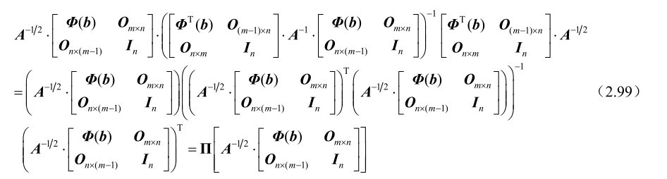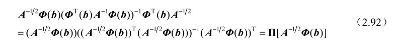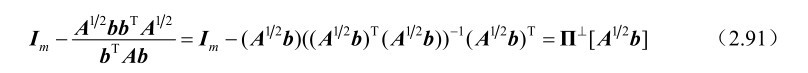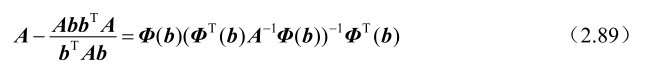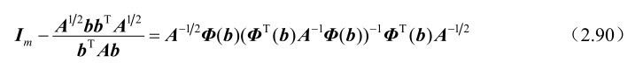 命题2.21: 假设A∈R m×m 为正定矩阵,b是任意m维非零向量,根据向量b构造列满秩矩阵Φ(b)∈R m×(m-1) 使得b T Φ(b)=O 1×(m-1) ,则有如下等式: