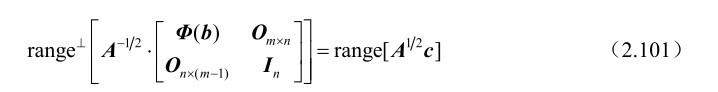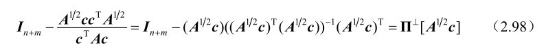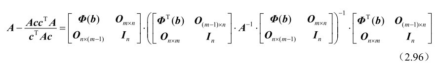 推论2.14: 假设A∈R (n+m)×(n+m) 为正定矩阵,b是任意m维非零向量,根据向量b构造列满秩矩阵Φ(b)∈R m×(m-1) 使得b T Φ(b)=O 1×(m-1) ,若令c=[b T O 1×n ] T ,则有如下等式: