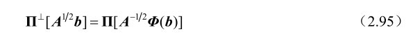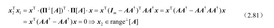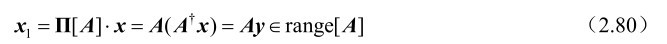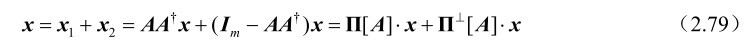 式中,x 1 =Π[A]⋅x和x 2 =Π ⊥ [A]⋅x。下面仅需要证明x1∈range[A]和x 2 ∈range ⊥ [A]。根据式(2.78)可知