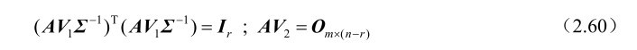 ,若r=0,则A是m×n阶零矩阵,此时不难验证n×m阶零矩阵满足式(2.68)。若r>0,则根据式(2.62)可将矩阵A进行奇异值分解: