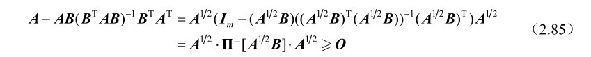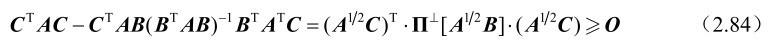 推论2.13: 假设A∈R m×m 是正定矩阵,B∈R m×n 是列满秩矩阵,则有