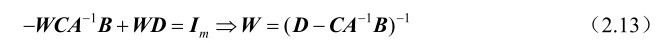 再由式(2.10)中的式(c)可知Z=-WCA -1 ,将其代入式(2.10)中的式(d)中可得