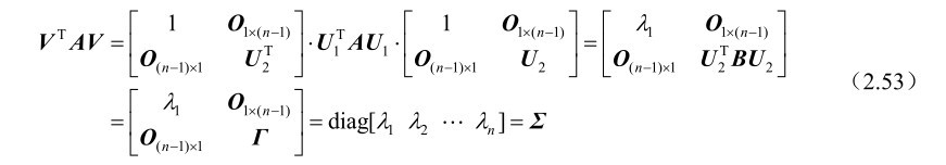 根据定义2.1可知,矩阵特征值λ是n阶多项式det[A-λI n ]的根,因此对于任意n×n阶矩阵而言,它都有n个特征值(但可能相等)。下面将介绍几个关于实对称矩阵特征值和特征向量的重要结论。