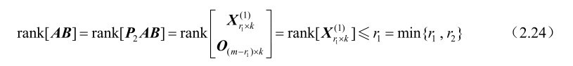 是一系列初等变换矩阵的乘积,因此用它左乘AB不会改变秩,于是根据式(2.23)可知