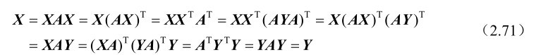 接着证明唯一性,假设存在两个矩阵X 和Y 均满足式(2.68),则根据 Moore-Penrose广义逆的定义可知