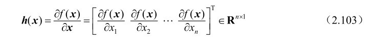 定义2.6:假设多维标量函数 f(x)是关于n维向量x=[x 1 x 2 x n ] T 的连续且一阶可导函数,则其梯度向量定义为