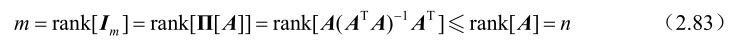 又因为A是列满秩矩阵,于是有n≤m,再结合式(2.83)可知n=m,由此可知A为满秩方阵。