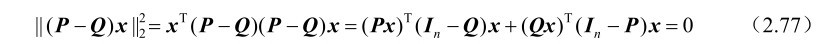 接着证明唯一性,假设存在子空间S上的另一个正交投影矩阵Q(也是对称幂等矩阵),则对于任意向量x∈R n×1 ,满足