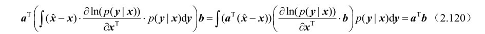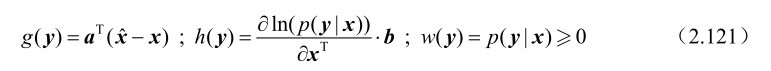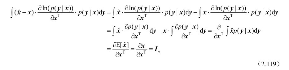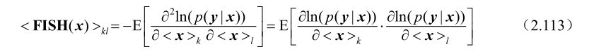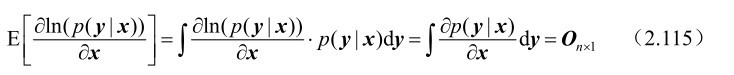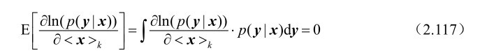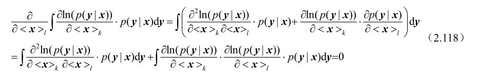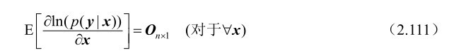 命题2.23: 假设m维随机观测向量y受到n(n≤m)维确定参量x的支配,并且其概率密度函数p(y|x)满足如下“正则”条件: