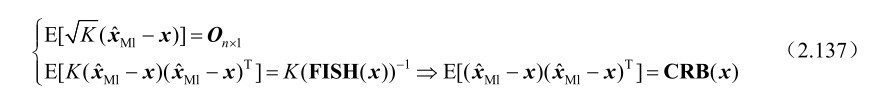 服从渐近高斯分布,其均值向量为真实参量x,方差矩阵等于CRB(x)。