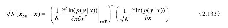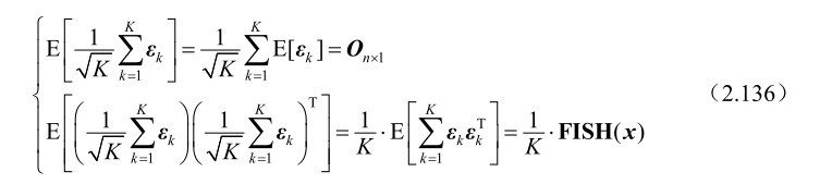 于此并根据中心极限定理可知式(2.135)服从渐近高斯分布,其均值向量和方差矩阵分别为