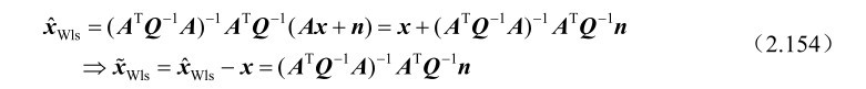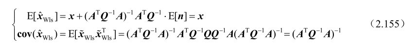 在线性观测模型条件下,当误差向量n服从零均值的高斯分布时(方差矩阵为Q),加权最小二乘估计值