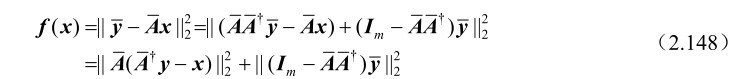 由于式(2.148)中的第3个等号右边第二项与未知参量x无关,因此只需要考虑其中的第一项即可。不难证明,为了使 f(x)取最小值,需要向量x满足如下等式: