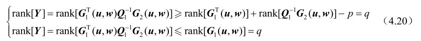 根据式(4.20)可知rank[Y]=q,即Y 是行满秩矩阵。另外,根据式(4.15),并结合第2章的命题2.20可得