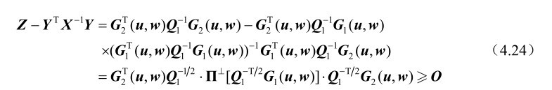 由于G 1 (u,w)是列满秩矩阵,根据第2章的命题2.13可知X>O,利用第2章的命题2.14可知式(4.18)等价于