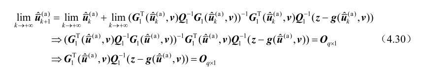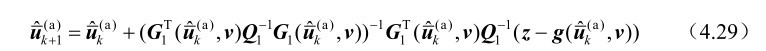 式(4.29)用测量向量v替换了第3章的式(3.11)中的真实向量w。若令式(4.29)的迭代收敛值为