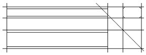 04 利用“矩形”快捷命令REC,绘制俯视图。角点坐标为左边构造线上适当一点和(@100,18),接着利用“直线”快捷命令L,绘制两条直线,端点分别为{(0,2),(@100,0)}和{(0,16),(@100,0)}。结果如图2-32所示。