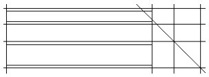 02 利用“直线”快捷命令L,绘制主视图两条棱线。一条棱线端点的坐标值为(0,32)和(@100,0),另一条棱线端点的坐标值为(0,39)和(@100,0),结果如图2-30所示。