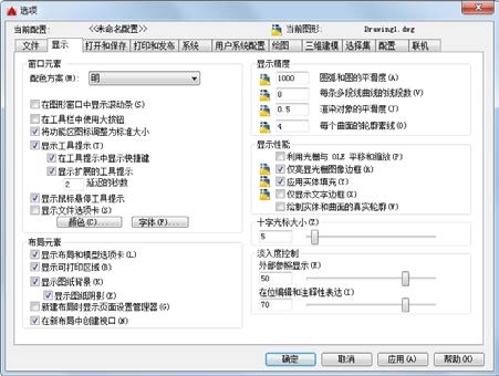 执行上述命令后,系统自动打开“选项”对话框。用户可以在该对话框中选择有关选项,对系统进行配置。