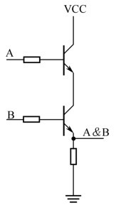 随便打开一本《数字电子技术》的教材(顺道说一句,听本套评书,最好身边必带一本《数字电子技术》教科书,时不时需要看看的),看个热闹,图2.2是一个用晶体管实现与门的例子。这么简单的与门,不算供电和数字地还用掉了5个元器件,更何况其他更加复杂的功能乎?