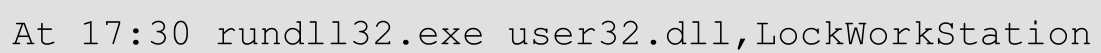 同样,假设你当前急着离开,但眼下并不急着锁屏,那有没有办法在指定的时间让系统自动锁屏呢?这时,可以通过命令“rundll32.exe user32.dll,LockWorkStation”实现。例如,想设定电脑在17:30自动锁屏,则格式为: