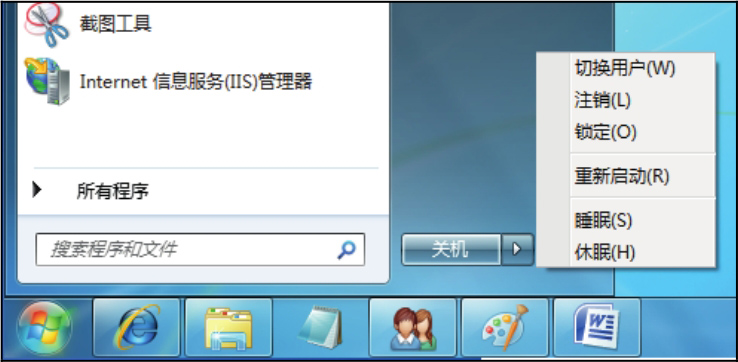 图3.3 Windows 7系统的注销菜单