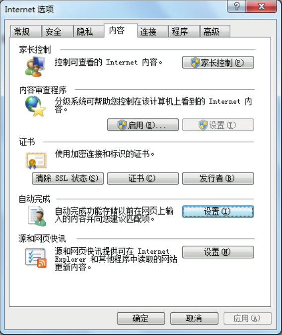 上网时的痕迹,除了上述脱机文件,还有在网页上输入的信息,包括用户名、密码,甚至Cookie。要删除这些录入信息,可在“Internet选项”界面选择“内容”选项卡,如图3.13所示。