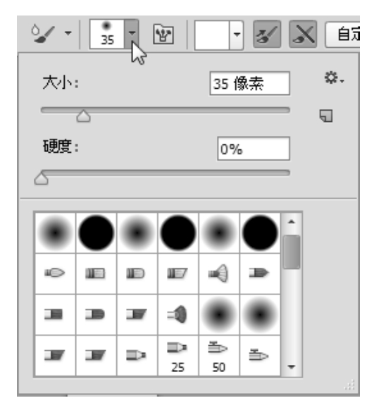 4 通过工具选项栏中的【切换画笔面板】按钮,可以打开【画笔】面板,更方便地选择需要的画笔,如图1-61所示。