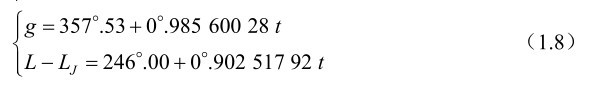 其中g是地球绕日运行轨道的平近点角,(L-L J )是太阳平黄经与木星平黄经之差,各由下式计算,即