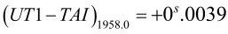 上述两种时间系统,在1958年1月1日世界时零时,TAI与UT1之差约为零,即