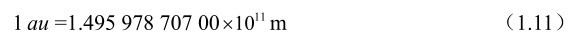 在新的时空参考系下,已采用IAU2009天文常数系统(见本书附录1),其中天文单位au采用了IAU2012年决议,它与长度单位“米”直接联系起来,不再沿用过去的相对定义方法,该值就是IAU2009天文常数系统中的值,即