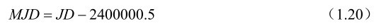 这里的JD(t)是时刻t对应的儒略日,其含义将在本节最后一段介绍。式(1.7)的适用时段为