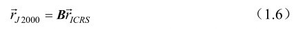是同一个单位矢量在不同参考系中的表示。在目前航天领域中,上述参考架偏差甚小,通常无须考虑,因此,本书将不再区分ICRS 和FK5参考系,都理解为J2000.0 平赤道参考系。那么,基本参考系就归结为ICRS,GCRS和ITRS,即国际天球参考系、地心天球参考系和地固参考系。