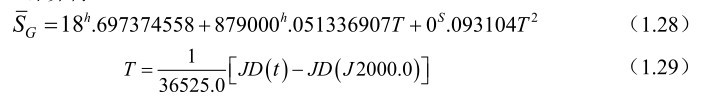 式中引数t是 UT1 时间,但计算其他天文量(岁差章动等)时,该引数t则为 TT时间。