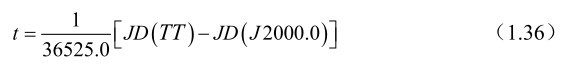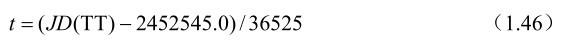其中t是自标准历元J2000.0起算的计算历元(TT时刻)的儒略世纪数,即